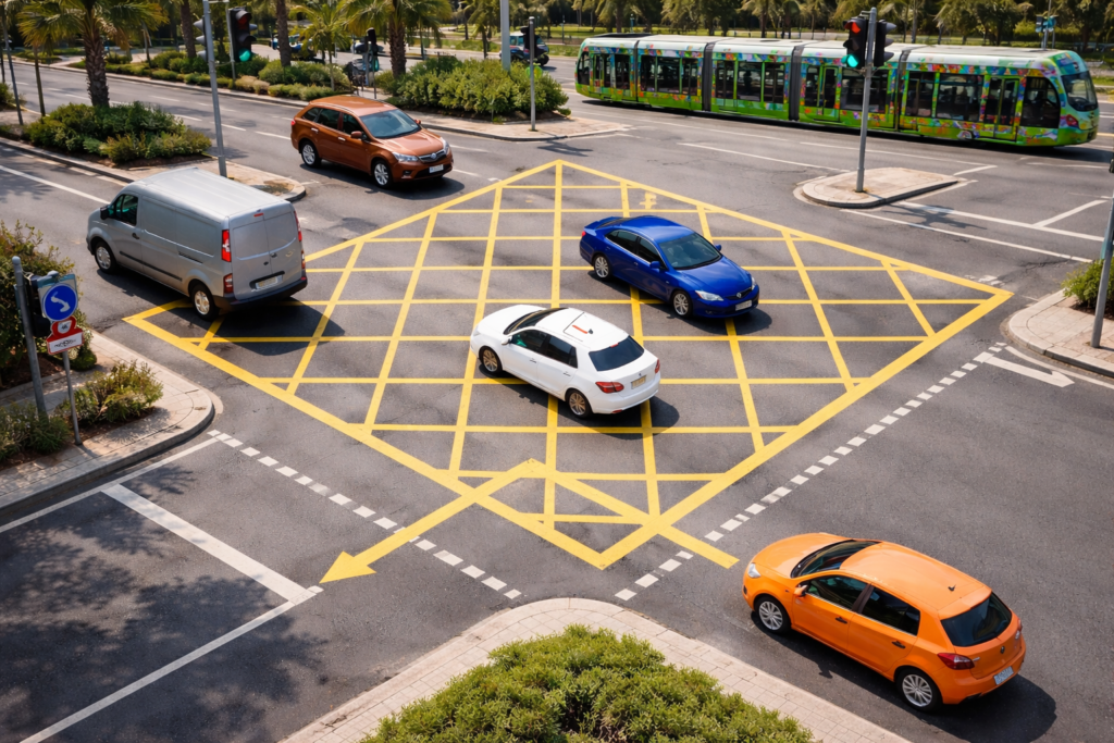 La solution : Quadriller en jaune le centre des carrefours les plus problématiques. On ne s’y engage que si la sortie est libre.